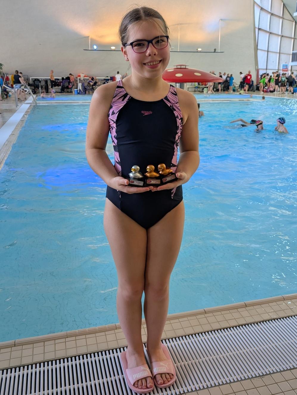 - Levke Schall (Jg. 2013) dominierte mit drei Goldmedaillen über 100m Lagen, 100m Freistil und 100m Rücken.