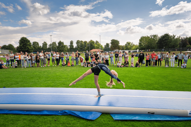 Auf dem Airtrack sorgte das Team außerdem für ein abwechslungsreiches Mitmachprogramm, das kleine und große Gäste gleichermaßen zum Staunen und Mitmachen einlud.
