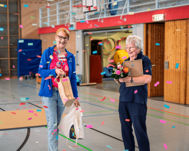 Denn: Ihre jahrzehntelangen Verdienste um den Turnsport im SV Gehrden – und weit darüber hinaus – waren auch dem Regionssportbund Hannover nicht verborgen geblieben. Und so ließ es sich Frau Ernst vom Vorstand der Organisation nicht nehmen, Regina Hagen im Rahmen der Aktion “Ehrenamt überrascht” eine ganz besondere Ehrung zu überreichen: Sie wurde offiziell zur “Vereinsheldin” ernannt – für ihr sportliches Lebenswerk und ihr unermüdliches Engagement.