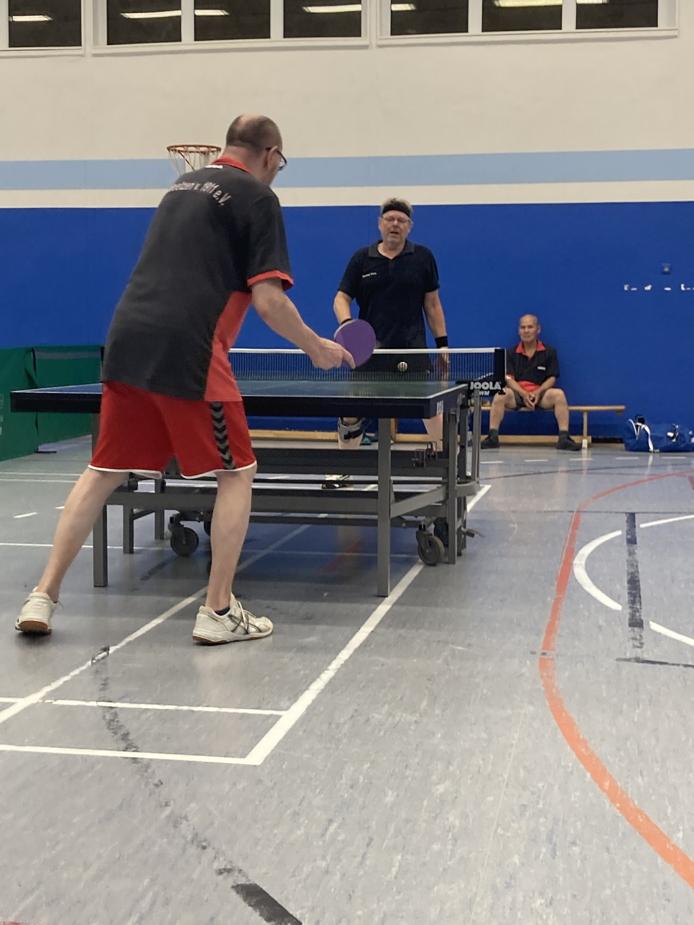 Nach drei Sätzen stand es 2 :1 für die Gegner, aber Ralph holte zum Satzausgleich auf. Viele Bälle, die Wolfgang schon als Winner abhakte, brachte Ralph auf den Tisch zurück und zeigte dem inzwischen leicht demoralisierten Wolfgang seine Grenzen auf machte mit einem